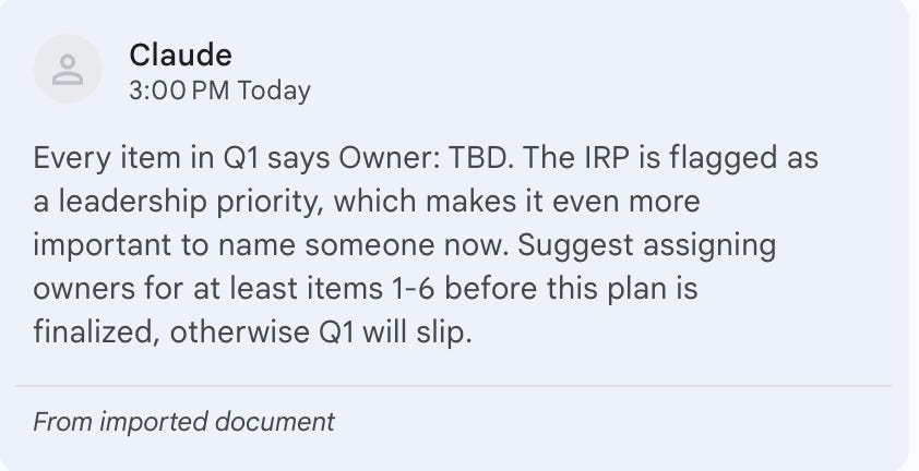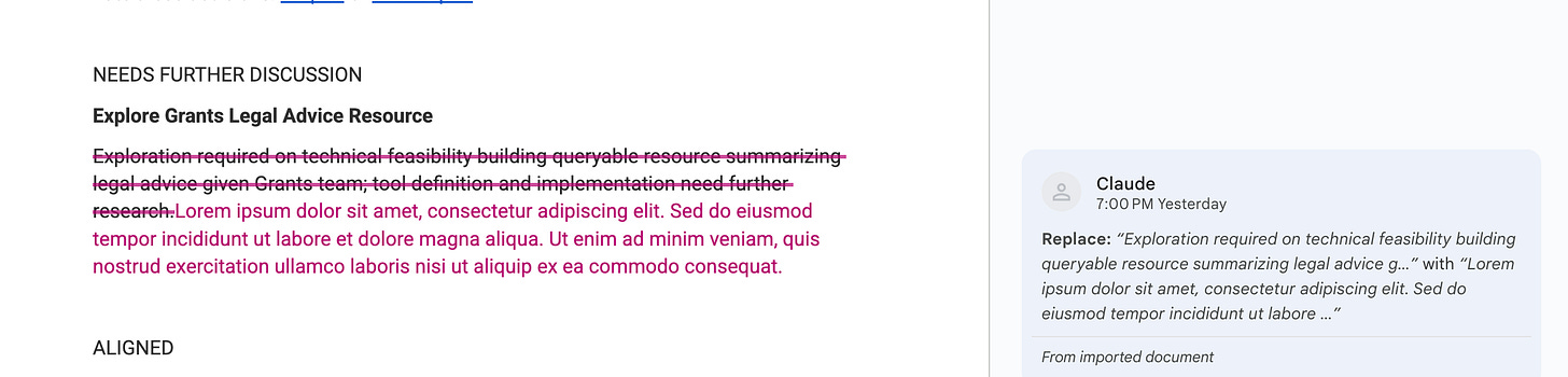 I think the next step here is to write a nice Claude Skill to make it even better at using comments, or even set up a workflow to automatically download and upload files to Google. I’m excited to keep making this process cleaner. I think having an AI comment on your docs is a really natural way to have an AI help with writing and red-teaming.